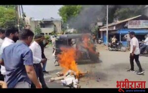 यांचा प्रतिकात्मक पुतळा जाळला.