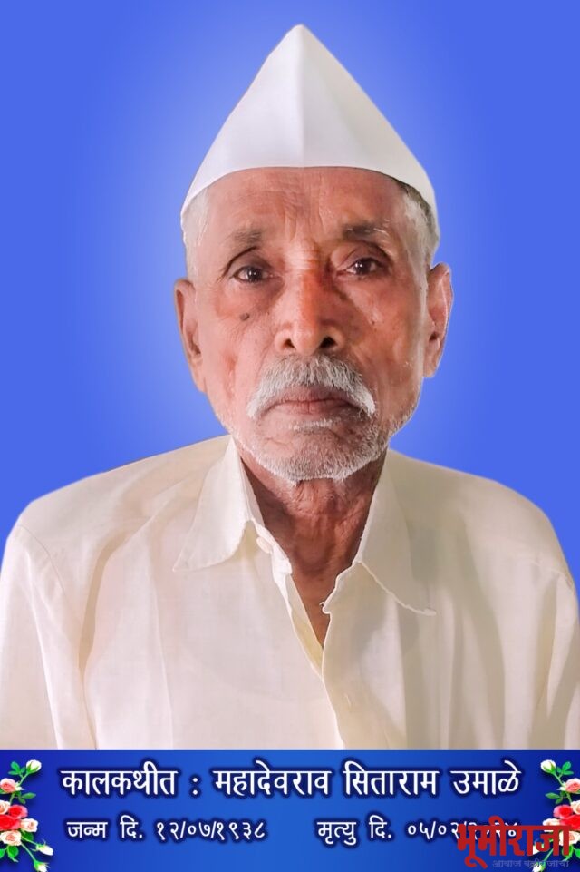 आमचे मार्गदर्शक तथा साप्ताहिक भुमीराजा न्युज चॅनलचे मुख्य संपादक अनिलजी उमाळे सर यांचे वडील महादेवराव उमाळे वय 86 यांचे वृद्धापकाळाने निधन झाले आहे.त्यांची अंतीमयात्रा उद्या ठिक अकरा वाजता निघेल.