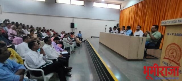निवडणूक निर्णय अधिकारी व नाशिक जिल्हा मुख्याध्यापक संघ यांच्या संयुक्त विद्यमाने C M C S कॉलेज नाशिक येथे शिक्षण उपशिक्षणाधिकारी उदय देवरे यांच्या अध्यक्षतेखाली नाशिक .म न पा व ९ तालुके या शाळांच्या मुख्याध्यापकांचे स्वीप अंतर्गत मतदान जनजागृती मोहीम राबविण्यात आली. यात शाळांनी मतदानाचा टक्का वाढविण्यासाठी शाळा स्तरावर राबविलेल्या उपक्रमाचा आढावा घेणे व त्याचे रेकॉर्ड शाळा स्तरावर अद्यावत ठेवणे व २० मे पर्यंत शाळा स्तरावर मतदान जनजागृती साठी व मतदानाचा टक्का वाढविण्यासाठी वेगवेगळ्या योजनांची माहिती देण्यात आली. मुख्याध्यापकांना वेगवेगळ्या सूचना देण्यात आल्या मतदानाचे बूथ शालेय परिसरात असेल तर सोयीसुविधा उपलब्ध करून देण्याची जबाबदारी मुख्याध्यापकांची असेल १ मे* *महाराष्ट्र दिनानिमित्त विद्यार्थी व पालक प्रगती पुस्तक घेण्यासाठी त्यांच्या आजी आजोबांसह हजर ठेवून त्यांची मिटिंग घेऊन मतदान जनजागृती करणे आचारसंहितेचे उल्लंघन होणार नाही याची काळजी घेणे अशा सूचना मुख्याध्यापकांना देण्यात आल्या शाळा स्तरावर विविध उपक्रमांची पीपीटी तयार करून, ती शिक्षणाधिकारी प्रवीण पाटील यांच्या मेलवर पाठवावी या संदर्भातील कार्यशाळा संपन्न झाली या कार्यशाळेसाठी व्यासपीठावर उपशिक्षणाधिकारी उदय देवरे गणेश फुलसुंदर प्रकाश अहिरे एम ओ पिंगळकर नाशिक जिल्हा मुख्याध्यापक संघाचे सचिव एस बी देशमुख उपाध्यक्ष प्रदीप सांगळे, एस ए पाटील ,रोहित गांगुर्डे, बाबा खरोटे, डॉ अनिल माळी एम डी काळे, वी के अलगत,वी जे आघाव यांच्यासह ४५० पेक्षा जास्त मुख्याध्यापकानीं या कार्यशाळेचा लाभ घेतला.