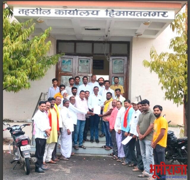 या बाबत सविस्तर वृत्त असे की हिमायतनगर तालुक्यातील ओबीसी बांधवांकडून आज दिनांक 21 जून रोजी हिमायतनगर तहसीलदारा मार्फत देण्यात आलेल्या निवेदनामध्ये ओबीसी समाजाच्या विविध संघटनेच्या वतीने मुख्यमंत्री एकनाथ शिंदे यांना पाठविलेल्या निवेदनात शिष्ट मंडळासह उपोषण स्थळी जावून उपोषणकर्त्यांची भेट घेण्याची व त्यांच्या मागण्या मान्य करण्यासंदर्भात लेखी आश्वासन देण्याची विनंती या निवेदनात करण्यात आले आहे व तसेच ओबीसी आरक्षाला धक्का लागल्यास ओबीसी बांधव मोठ्या संख्येने महाराष्ट्राच्या रस्त्यावर उतरतील व महाराष्ट्र शासनाने या निवेदनाची दखल न घेतल्यास दिनांक 26 जून रोज बुधवारी हिमायतनगर शहरातील संपूर्ण बाजारपेठ बंद ठेवण्यात येईल असा गंभीर इशारा सुद्धा यावेळी देण्यात आला आहे तसेच हिमायतनगर शहरा सह राज्यात कायदा व सुव्यवस्था बिघडल्यास त्याची सर्व जबाबदारी महाराष्ट्र सरकारची असेल असे या निवेदनात नमूद करण्यात आले आहेत…यावेळी ओबीसी संघटनेचे तालुका अध्यक्ष बाबाराव जर्गेवाड ,दिलीप अला राठोड ,आनंदा मुतनेपवाड, रामेश्वर पाकलवाड, श्याम ढगे , नागेश शिंदे,सुनील चव्हाण, आनंद गायकवाड, सुभाष माने, ,विनोद आरेपल्लू, संतोष सातव, गजानन गोपेवाड, अशोक अनगुलवार, विजय वाठोरे, दिगाबर काळे, सुरज चीतलवार, दिलीप नागडे, ज्ञानेश्वर राहुलवार, सुभाष शिंल्लेवाड, सह ओबीसी समाज बांधव मोठ्या संख्येने उपस्थित होता.