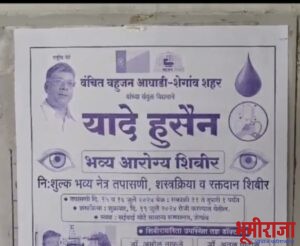शेगाव* “यादे हुसैन” मोहरम निमित्त शेगाव शहरातील आरोग्य सेवक मोहम्मद सलमान मित्र मंडळ व वंचित बहुजन आघाडी शेगाव शहेर तर्फे १५व १६ जुलै रोजी सईबाई मोठे उपजिल्हा सामान्य रूग्णालयात भव्य नेत्र तपासणी व शस्त्रक्रिया शिबिराचे आयोजन करण्यात आले असून दोन दिवसात १३६ रूग्णांची तपासणी करण्यात आली. यापैकी १२ रुग्णांची दिनांक १९ जुलै ला शस्त्रक्रिया करण्यात येणार असून सहारा नेत्र क्लिनिक डॉ. दाऊद दिवाणी यांच्या दवाखान्यात १५६ रुग्णांची तपासणी करण्यात आली असून त्यात ५५ रुग्णांना चष्मे असल्याचे आढळून आले असून, त्यांना १९ जुलै रोजी मोफत चष्मे वाटप करण्यात येणार आहेत मोफत चष्मा,व शस्त्रक्रिया ही मोफत केले जाईल.