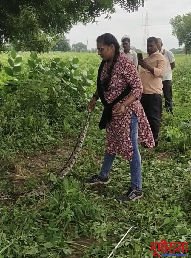 प्रतिनिधी पारस येथून जवळच असलेल्या मनारखेड गावातील अभी पाटील यांच्या शेत शिवारात भला मोठा साप शेतकऱ्यास दिसून आला त्यांनी क्षणाचाही विलंब न करता लगेच गावातील सर्पमित्र दीपक लोड यांना संपर्क केला दीपक लोड यांनी लगेचच घटनास्थळी धाव घेत पाहिले असता त्यांना अजगर साप आढळून आला परिस्थिती अत्यंत वाईट होती म्हणून त्यांनी लगेच पारस येतील सर्प मैत्रीण प्रतिभाताई ठाकरे यांना लगेच मनारखेड येथे बोलून घेतले प्रतिभाताई ठाकरे व शुभम लोडगे लगेचच क्षणाचा विलंब न करता मनारखेड येथे पोहोचले आणि त्यांनी सापाची पाहणी केली असता त्यांच्या लक्षात आले की हा अजगर जातीचा साप आहे त्यांनी लगेचच अजगर