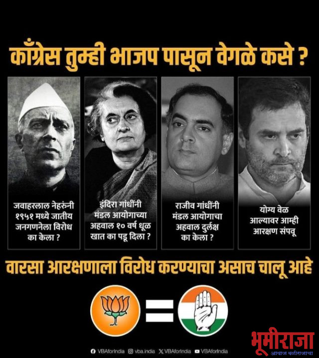कॉंग्रेस पक्षाने आरक्षण तर कुणाला दिलेच नाही मात्र जे संविधानाच्या माध्यमातून मिळाले होते ते या ना त्या सबबीखाली काढून घेण्याचे पाप कॉंग्रेस पक्षाच्या शासन काळातच झाले हा काही योगायोग नाही तर ते ठरवून राबविलेले धोरण आहे…..!!