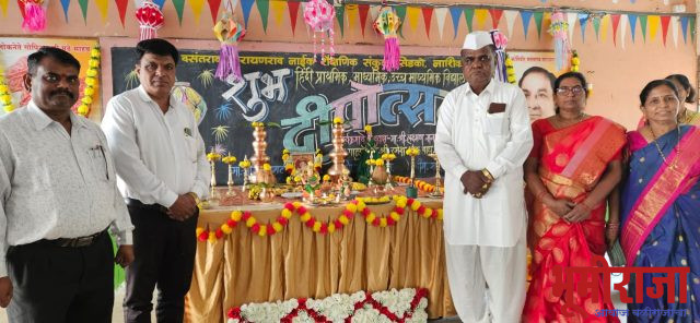 हिंदी प्राथमिक, माध्यमिक व उच्च माध्यमिक विद्यालय सिडको, या विद्यालयाच्या प्रांगणात आज दिवाळी सण उत्साहात साजरा करण्यात आला. या निमित्ताने विद्यार्थ्यांनी स्वतः आकाश कंदील तयार करून विद्यालयात रोषणाई व सुशोभीकरण केले. सर्व परिसरामध्ये उत्सवाचे , आनंदाचे व मंगलमय वातावरण तयार झाले होते. याप्रसंगी संस्थेचे विश्वस्त माननीय.लक्ष्मण नाना जायभावे यांनी सर्व विद्यार्थ्यांना मार्गदर्शन केले, प्रदूषण मुक्त व निसर्गा ची हानी होणार नाही अशी दिवाळी साजरी करण्याचे त्यांनी सर्वांना आवाहन व मार्गदर्शन केले. याप्रसंगी संस्थेचे संचालक श्री. रमेश भाऊ वाघ, प्राचार्य अलगट सर,प्राथमिक विद्यालयाच्या मुख्याध्यापिका .यादव मॅडम, पर्यवेक्षिका नाईक मॅडम व दोन्ही विद्यालयाचे शिक्षक व शिक्षकेतर कर्मचारी यांनी परिश्रम घेतले व उपस्थित होते.