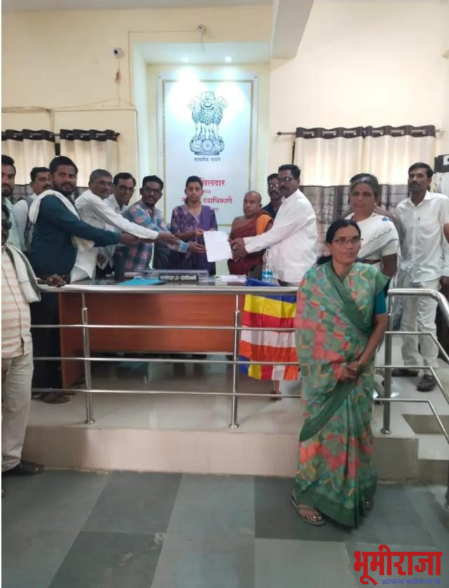 व बाहेर देशांमध्ये देखील आंदोलन सुरू आहे या अनुषंगाने सदरील महाविहार बौद्धांच्या ताब्यात देण्याकरिता आज दिनांक 6 मार्च रोजी निवेदन तहसीलदार मार्फत राष्ट्रपती महोदय यांना देण्यात आले यावेळी भारतीय बौद्ध महासभा तालुका शाखा पदाधिकारी प्रताप रोकडे तालुकाध्यक्ष सुरेश गडपाले सरचिटणीस बाबासाहेब मुनेश्वर प्रताप लोमटे चंद्रकांत हनवते स्वप्निल हनवते विश्वनाथ खिराडे सर बबन कामाजी जाधव अनिल तुकाराम हाटे पत्रकार कैलास कांबळे पोलीस पाटील संदेश तुळसे बळीराम येरेकर नितीन प्रकाश हनवते आकाश कदम कांताबाई जाधव कांताबाई गायकवाड बेबाबाई हनवते मारुती हनवते पत्रकार एसपी गुंडेकर विजय वाठोरे वैभव कदम आदरणीय भंते सारीपुत थेरो यांच्या सह उपासक व उपासीका मोठ्या संख्येने उपस्थित होते