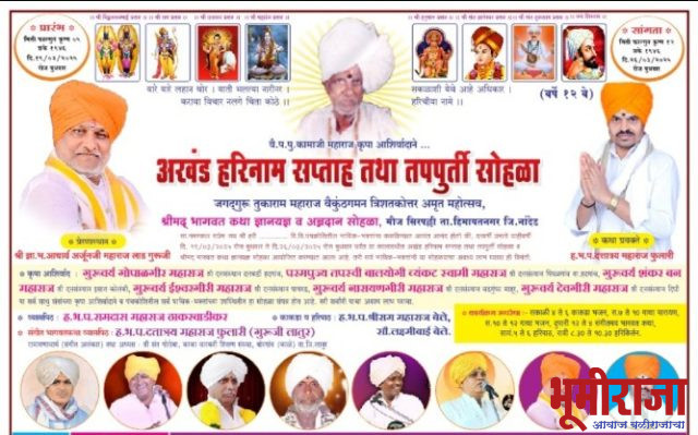 जगद्गुरु तुकाराम महाराज वैकुंठगमन त्रिशतकोत्तर अमृत महोत्सव, श्रीमद भागवत कथा ज्ञानयज्ञ व अन्नदान सोहळ्याचे दिनांक 19 मार्च 2025 ते 26 मार्च 2025 या कालावधीत आयोजन करण्यात आले आहे.