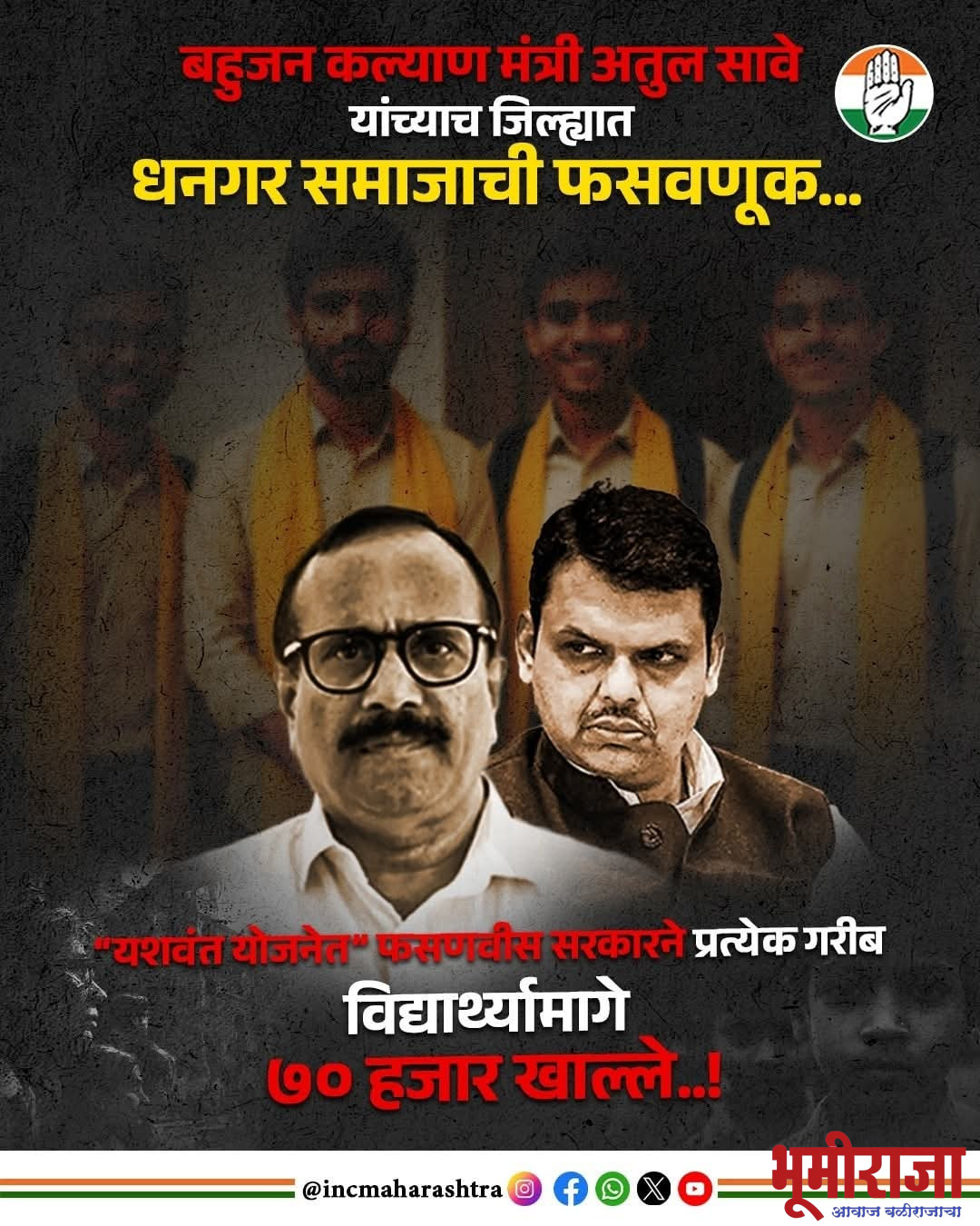 कागदावर बोगस वसतिगृहे दाखवून धनगर समाजातील विद्यार्थ्यांच्या नावावर अनुदान लाटणारे हे महाभाग कोण? श्रीमंत राजे यशवंतराव होळकर यांच्या नावाने योजना सुरू होते. आणि भ्रष्टाचाराची कुरण बनते?